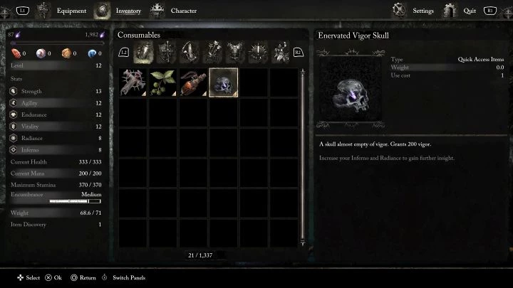 В игре также есть предмет под названием Vigor Skull, который дает энергию при использовании. Мы рекомендуем использовать эти предметы только в безопасных местах, чтобы избежать потери опыта.