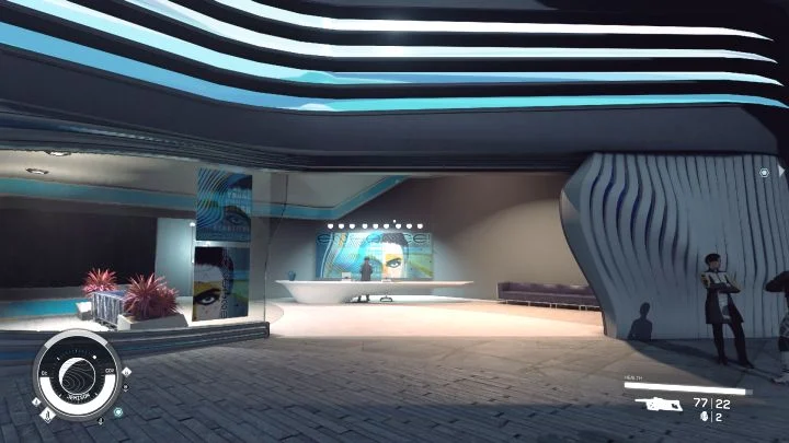 Если вам необходимо изменить внешний вид своего героя, вы можете посетить салоны Enhance! Макетный центр, как показано на изображении, находится в коммерческом районе Новой Атлантиды, но также можно найти и другие важные города в различных частях галактики.