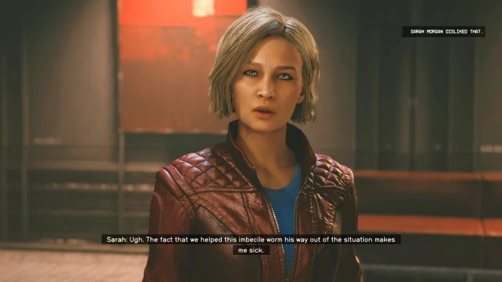 Одним из надежных способов значительно улучшить отношения является позволение компаньонам вступать в разговоры с другими персонажами. В приведенном примере показан вариант, когда Сара ведет разговор с NPC, а не с игроком.