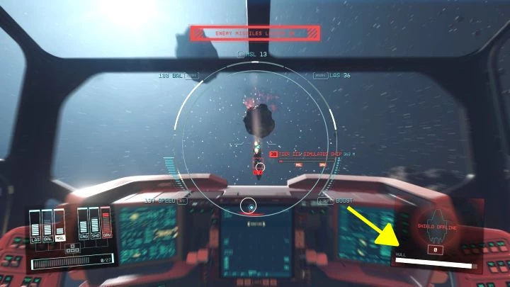Повреждения корпуса считаются наиболее серьезными. Дело в том, что корпус не может сам по себе восстановиться – вам придется сделать это самостоятельно. Враждебные атаки могут постепенно разрушать корпус после потери всех щитов. Информация о состоянии щитов и корпуса отображается в правом нижнем углу экрана, и вы всегда должны максимально переключить мощность на щиты и постоянно улучшать их, чтобы выдерживать больше атак.