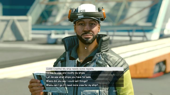 Ищите техников в различных портах, которые способны отремонтировать ваше судно. На скриншоте выше изображен техник, который находится на посадочной площадке в Новой Атлантиде.