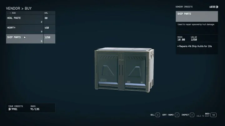 Ремонт корпуса, конечно, не бесплатный. В данном примере он обошелся в 1000 кредитов. Лучше всего воспользоваться этим вариантом, если корпус сильно поврежден. Не тратьте кредиты на мелкий ремонт.
