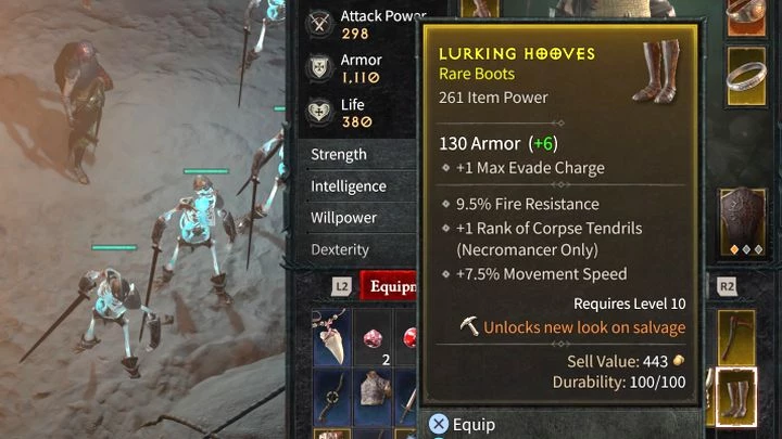 Вы можете получить дополнительные заряды уклонения с помощью предметов, которые увеличивают максимальное количество зарядов. На скриншоте мы показываем пример такого предмета в Diablo 4.