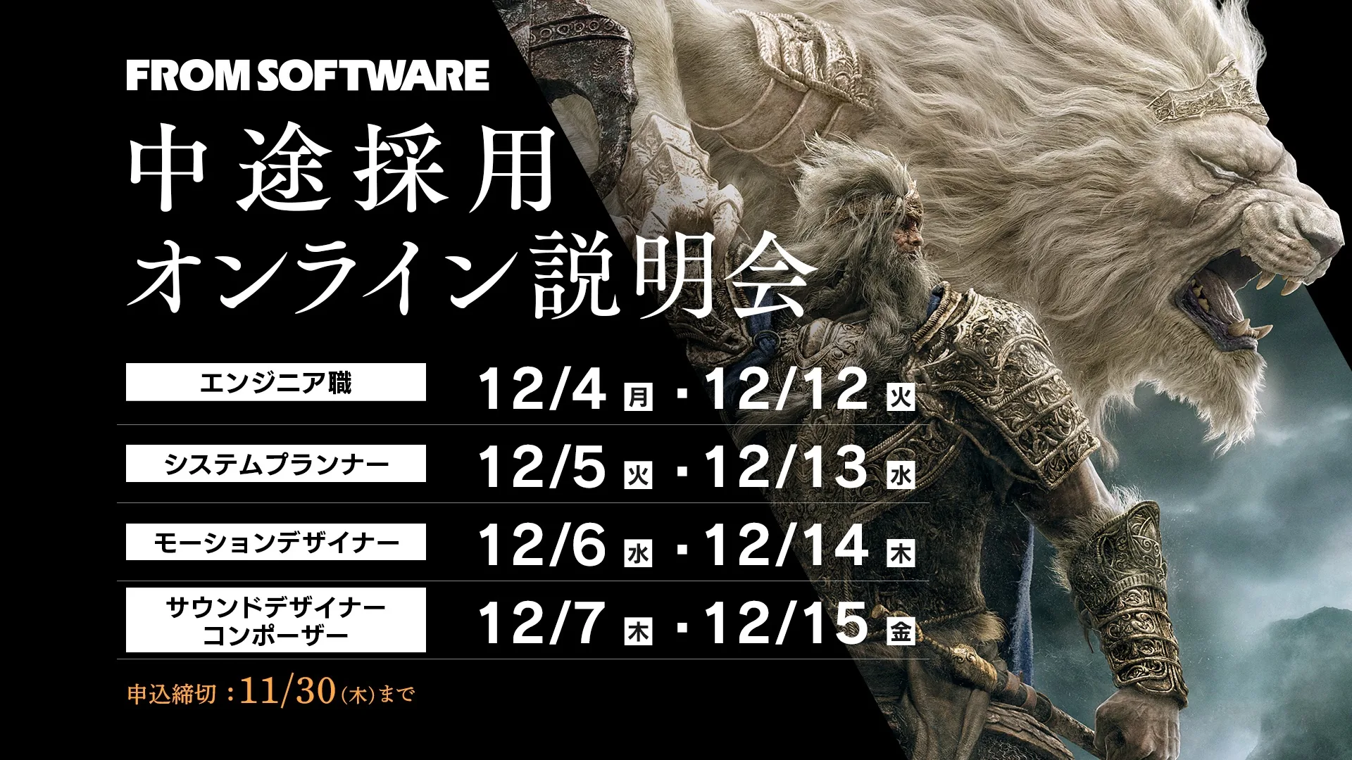 FromSoftware объявила о запуске программы поиска новых сотрудников для нескольких предстоящих проектов. Онлайн-консультации пройдут в период с 4 по 15 декабря, и все желающие должны зарегистрироваться до 30 ноября. В рамках консультаций будут представлены разные специальности, и в случае положительной оценки со стороны компании, сотрудникам могут быть предложены рабочие места внутри FromSoftware.