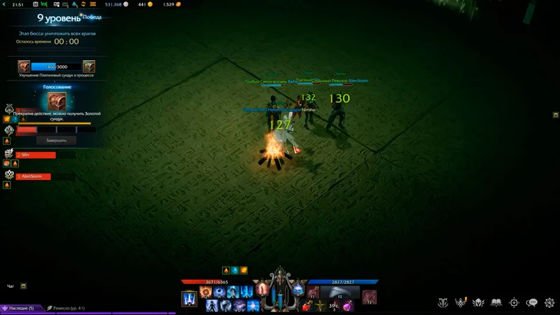 Есть баффы, которые моментально или постепенно восстанавливают здоровье. Есть на неуязвимость, на уменьшение поля зрения, на понижение или понижение брони или атаки. Старайтесь менять тактику боя, в зависимости от наложенного баффа или дебаффа. Самый важный момент – это смотреть, кританул он или нет. Если он критует, то он будет висеть до следующей комнаты. Ещё в Кубе можно использовать одну фишку – когда вы заканчиваете этаж, у вас начинает идти отсчёт времени, где вы можете выбрать, продолжить или завершить испытание. Вы можете поставить костёр и лечиться, а когда полоска доходит до самого конца, кто-нибудь один нажимает завершить, и эта полоска обновляется. Этим самым вы выигрываете себе время.