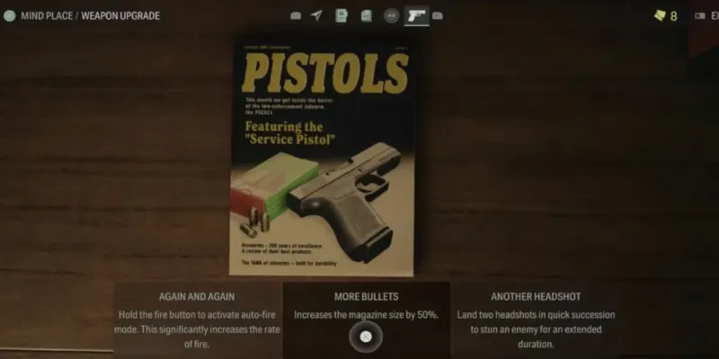 Для усовершенствования оружия в игре Alan Wake 2 необходимо проникнуть в сознание Саги Андерсон, доступ к которому появляется уже в самом начале игры, в главе "Возвращение 1: Приглашение". Внутри сознания вы обнаруживаете различные предметы, с которыми можно взаимодействовать, такие как доска для дел и стол для профилирования.