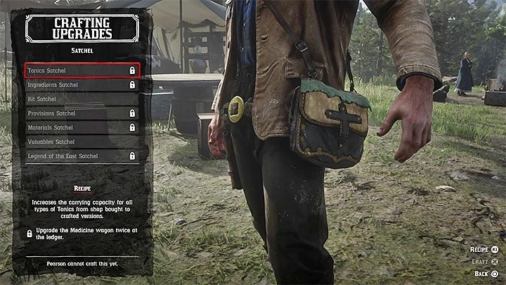 Но это еще не все, потому что каждая из предлагаемых сумок имеет свои требования, которые должны быть выполнены, прежде чем их можно будет изготовить. Такие требования могут быть связаны с проектами по модернизации лагеря голландской банды (например, улучшение медицинского вагона) и приобретением ремесленных компонентов, включающих такие предметы, как шкуры диких животных идеального качества.