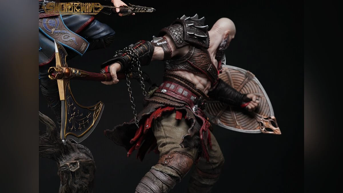 Сверхдетализированная фигурка по мотивам God of War: Ragnarok была представлена компанией Sword & Wing. Главными героями стали Кратос и Атрей, изображенные в разгаре схватки с драуграми.
