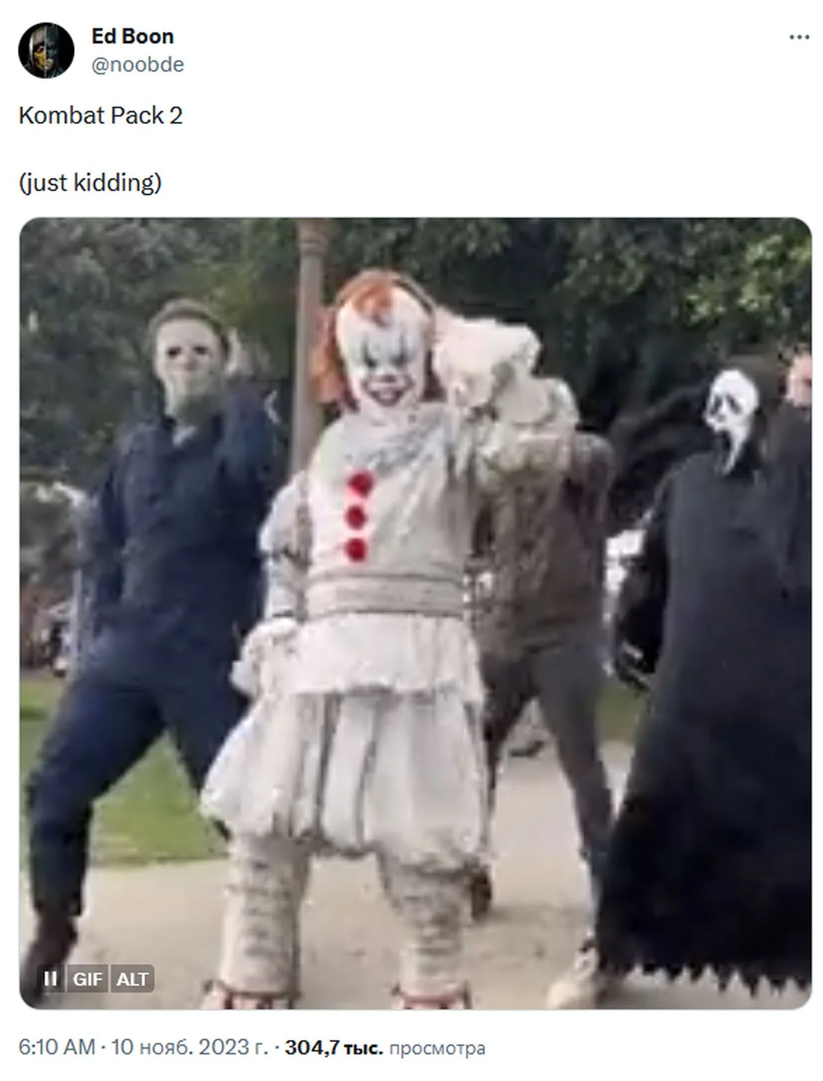 Дизайнер игр опубликовал гифку, на которой изображены четыре знаменитых злодея: Джейсон Вурхез (из "Пятницы, 13-е"), Кожаное Лицо (из "Техасской Резни Бензопилой"), Пеннивайз (из "Оно") и Призрачное Лицо (из "Крика"). Конечно, это шутка, но с долей правды - Джейсон и Кожаное Лицо уже появлялись в качестве дополнительных персонажей в Mortal Kombat X.