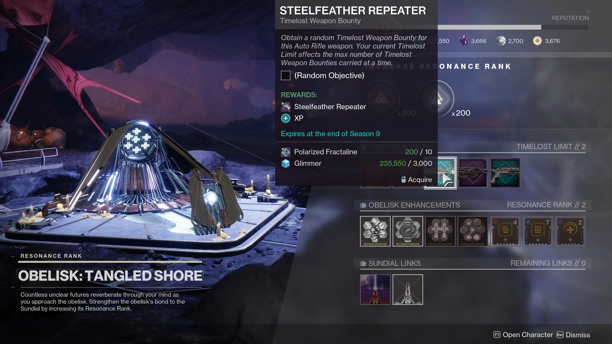 Что касается того, на что тратить ваш Поляризованный Фракталин, это легко. Он может быть использован для повышения Резонансного ранга на Обелиске, он открывает новые возможности для оружия и модов или может быть использован для покупки награды у Обелиска, он награждает оружием по завершении. Повышение Резонансного Ранга одного из Обелисков требует значительно больше Поляризованного Фракталина, чем покупка контрактов, поэтому подумайте, где вы планируете потратить этот материал осторожно.