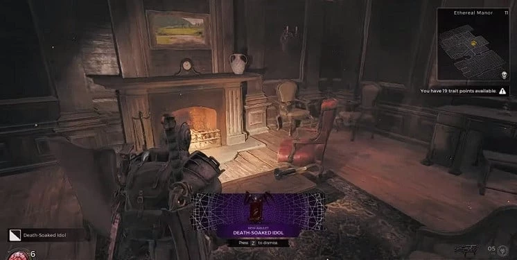 Найдя каждый талисман, вы будете телепортированы обратно в начало Эфирного поместья. Когда все 4 талисмана будут собраны, вам придется вернуться в Эфирное поместье и открыть первую правую дверь на 1-м этаже, чтобы найти Амулет Пропитанного смертью идола на столе.
