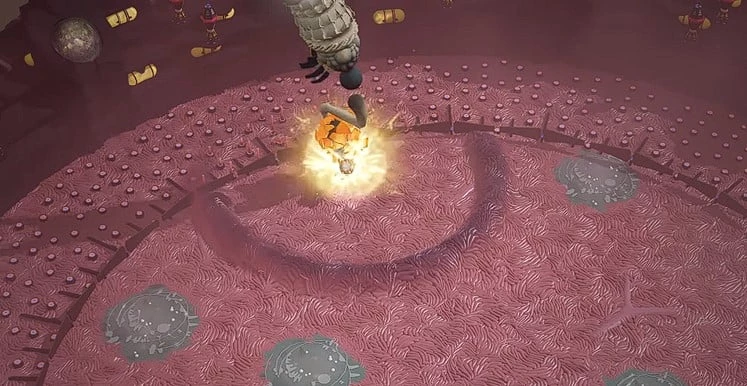 Арена для битвы с боссом заполнена красным веществом, которое замедляет скорость передвижения персонажа. Игрокам необходимо оставаться в синих зонах арены, чтобы зарядить воздушный шар и использовать его для перемещения по арене. Однако перед победой над пауком, нужно сначала разбить 4 желе в воздухе при помощи воздушного шара. Каждое желе сопровождается дроном, который необходим для питания таинственной башни на арене. После активации башни придется сразиться с гигантским Желе, нанося удары во время полета. По завершении этого этапа появится Желеобразный паук, с которым начнется сражение.