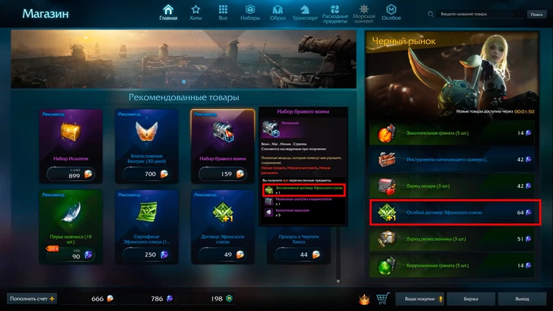 Последнее, что можно про ежедневные задания – их лимит можно повышать двумя свитками. Первый – это «Особый договор Эфонского союза». Второй – «Эксклюзивный договор Эфонского союза». Особый договор повышает лимит ежедневных заданий на 1 в день, а Эксклюзивный повышает на 3. Последний можно получить на данный момент только из «Набора бравого воина».