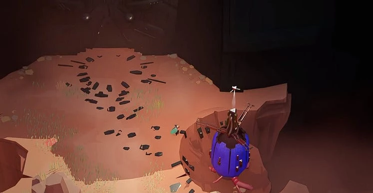 Теперь вернитесь и используйте дрон, чтобы добраться до движущейся платформы, а затем вернуться к машине со сферой. Поместите шар в машину и прыгните обратно внутрь шара на своем новом дроне. Вернитесь к синему переключателю и взаимодействуйте с ним, чтобы дрон активировал переключатель, открывающий большую металлическую дверь с бабочкой.