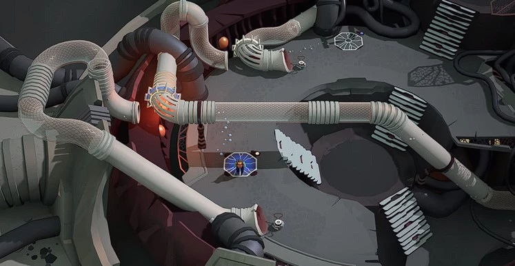 Теперь возьмите шар, спуститесь по лестнице и перенесите его влево. Поставьте его на подставку для открытия мостов. Продвигайтесь вперед и используйте движущуюся платформу, чтобы вернуться, взять шар и перенести его на противоположную сторону через движущуюся платформу. Бросьте шар в трубу и идите вперед, чтобы забрать его снова. Затем переместитесь в конечную точку области, чтобы разместить сферу. На пути вам понадобится встать на кнопки, чтобы переключать концы трубы и направить сферу в нужное место.