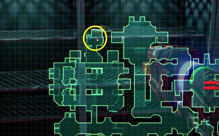 В пути вы также пройдете мимо комнаты, содержащей разрушаемые компьютерные узлы, рядом с кабинетом администратора. В кабинете администратора вы найдете терминал киберпространства, который необходимо использовать.