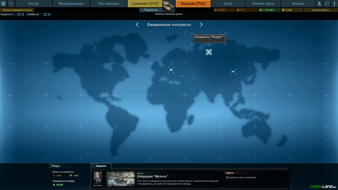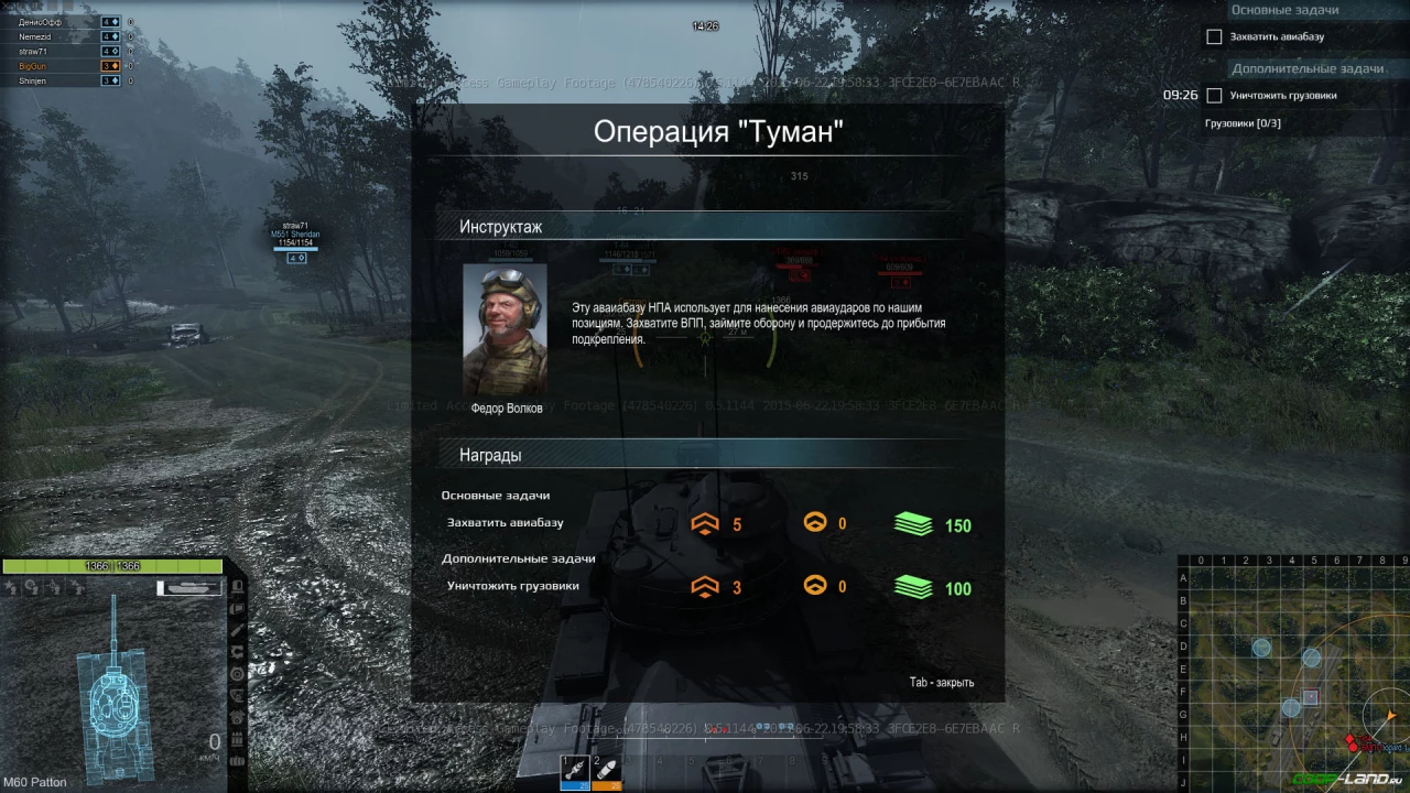 Набор карт на сервере меняется каждые 20 минут. Также помимо выбора различных заданий, в игре присутствует Обучение, причем независимо от выбора техники, вы будете проходить миссию на танке Т-64.