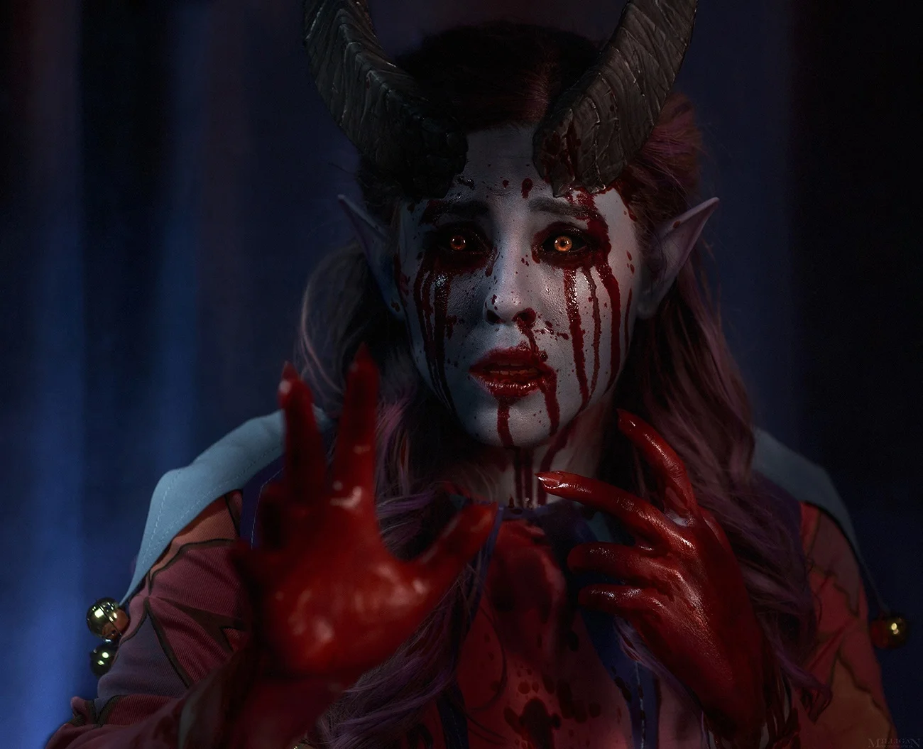 Известная художница по имени Настя Кулаковская, артистический псевдоним которой – Drakonoart, предстала перед нами в образе Альфиры, тифлинга из игры Baldur’s Gate III.