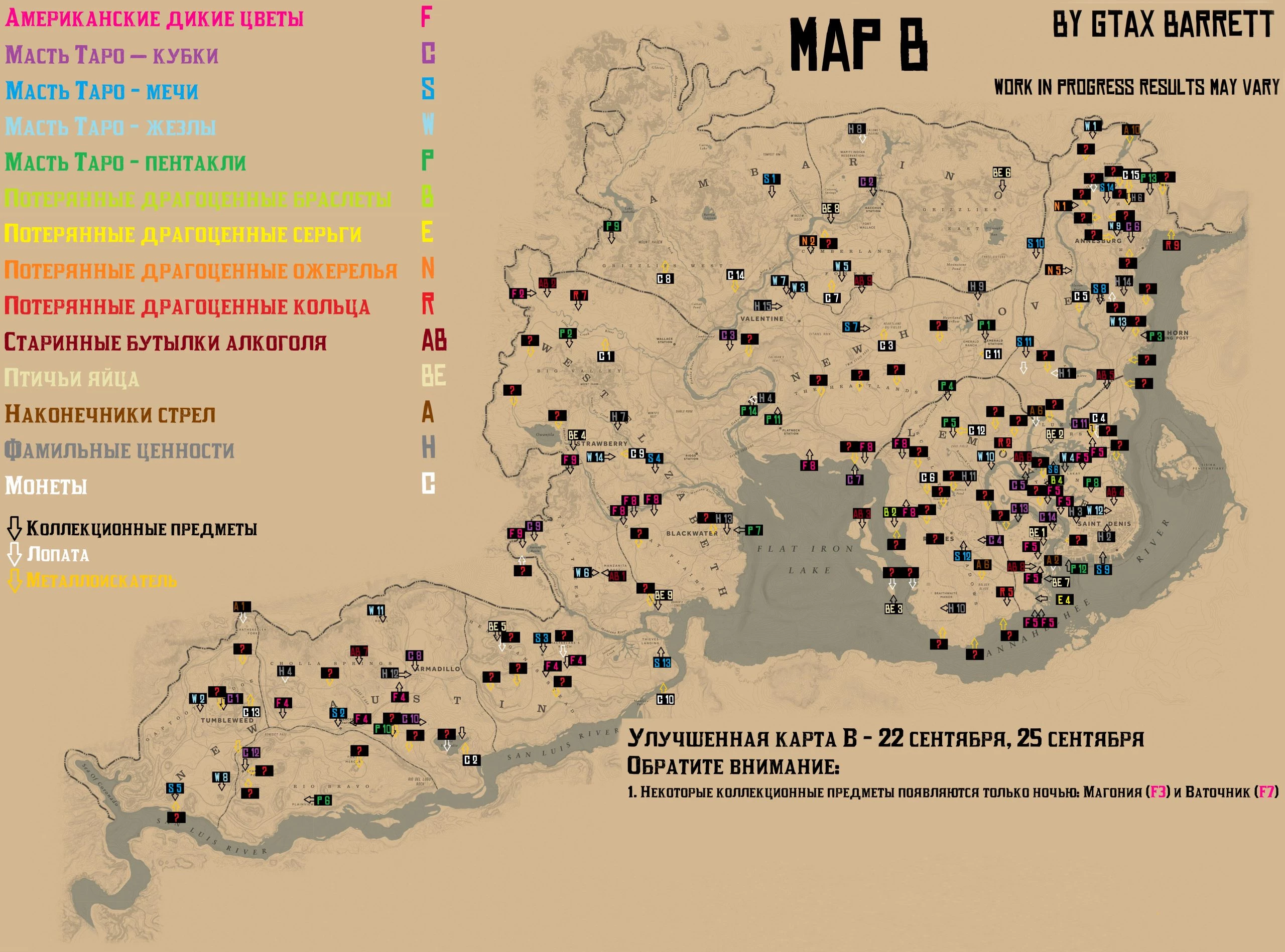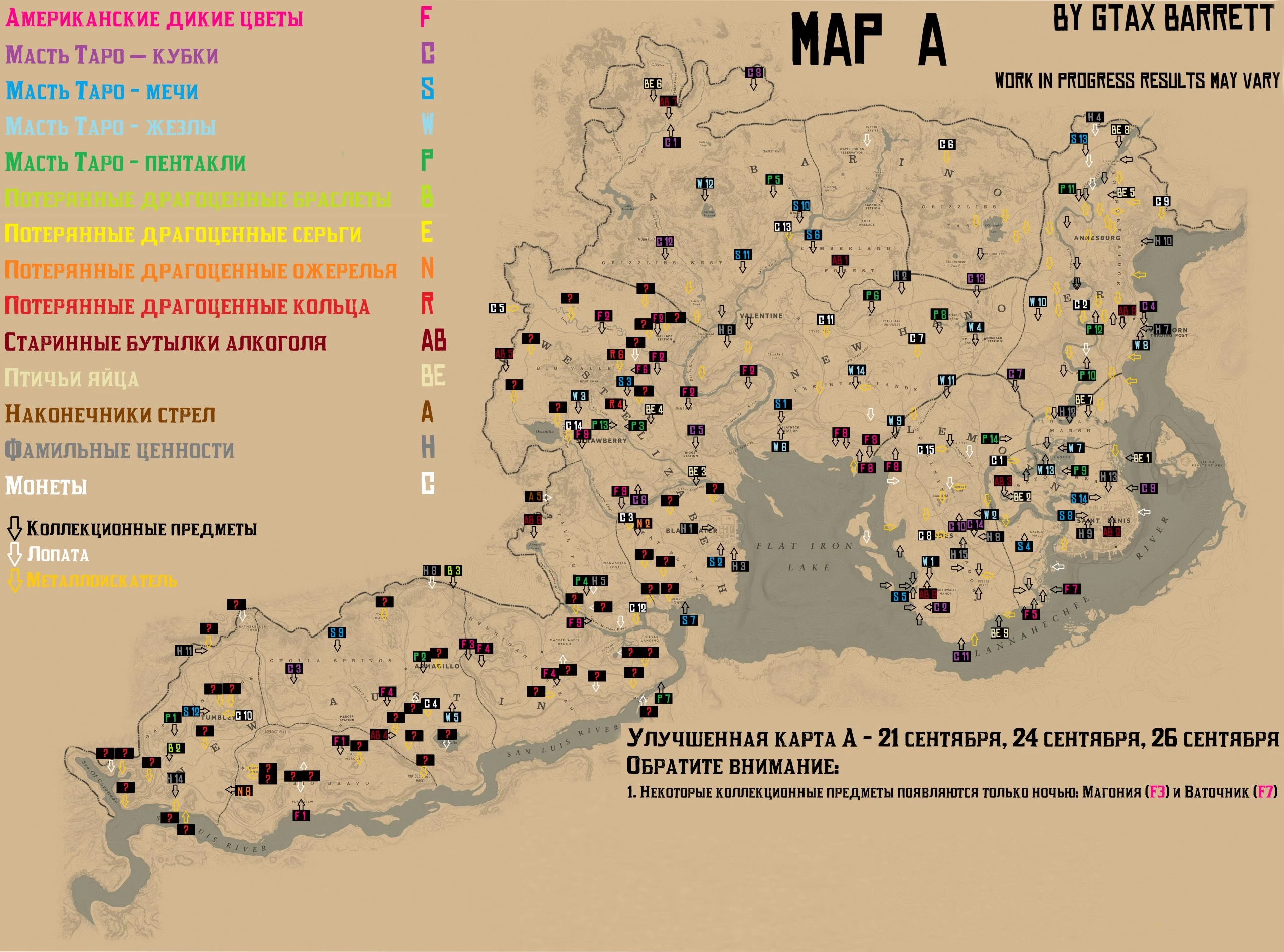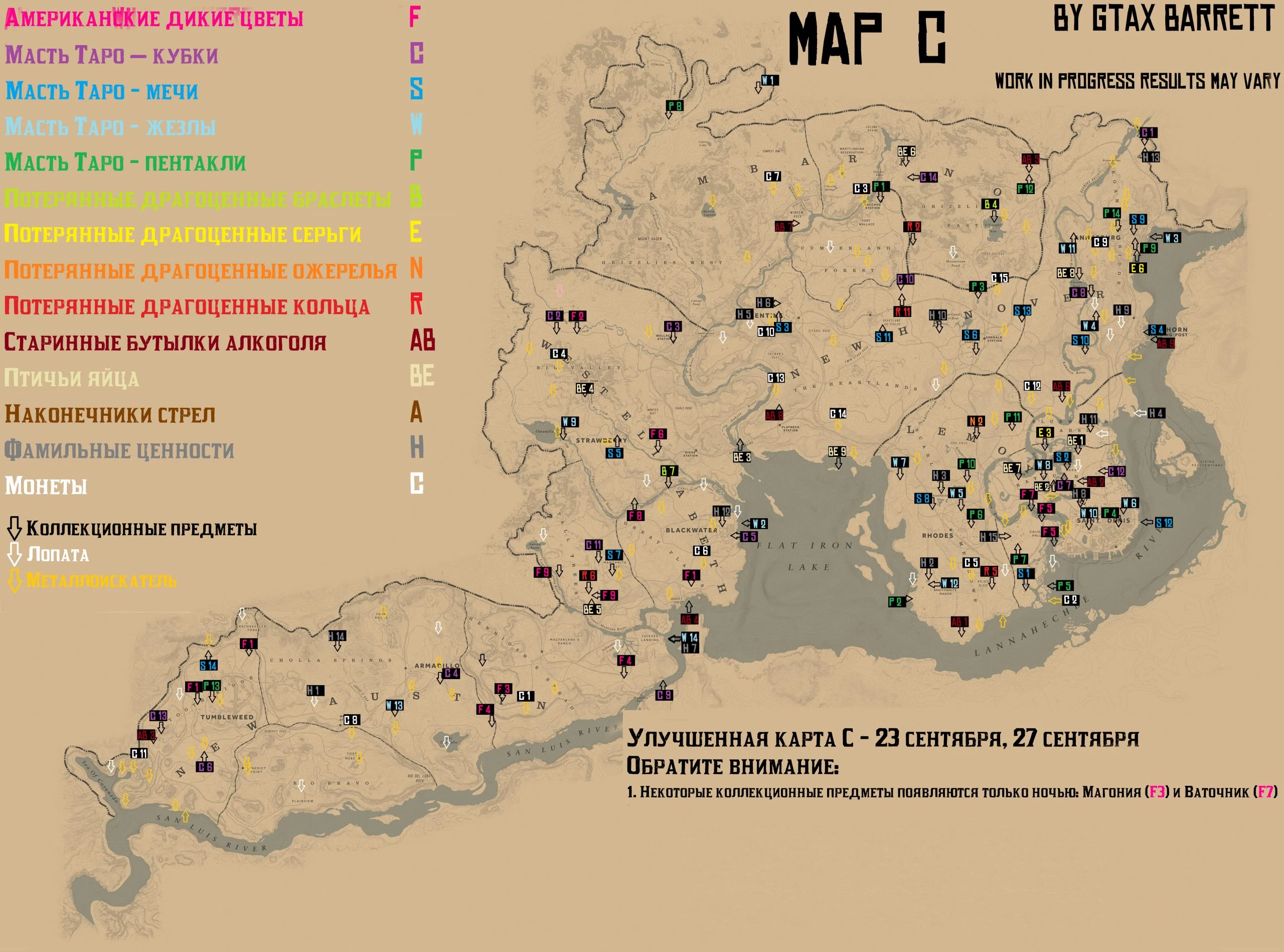Местонахождение коллекционных предметов для Коллекционеров. Актуальность каждой из карт в определенные дни недели:
