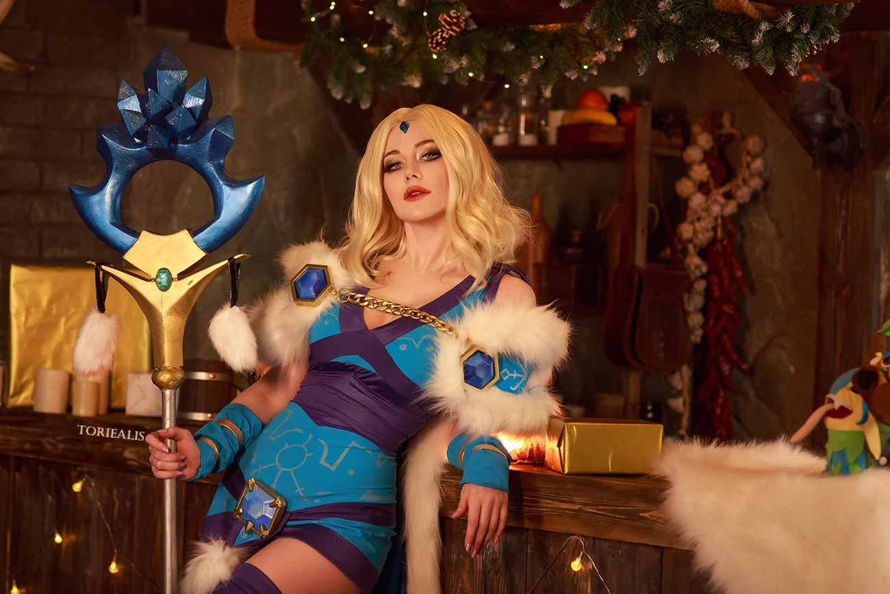 Эта мастерица решила продемонстрировать новогоднюю версию Crystal Maiden, воплощая ее яркий образ. Так она рассказала своим подписчикам, что ей пришлось заняться организацией праздничного декора самостоятельно.