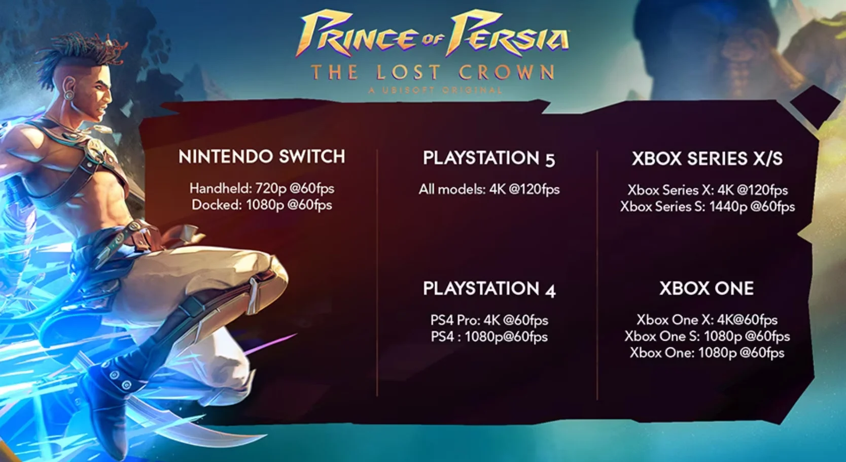 Также Ubisoft сообщила спецификации консольных версий игры Prince of Persia: The Lost Crown. Напомним, что игра будет доступна и на предыдущем поколении консолей.