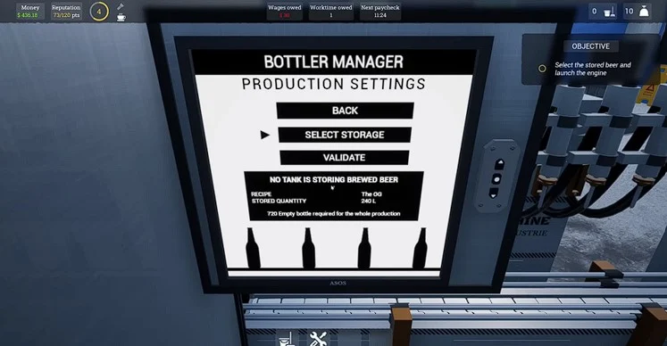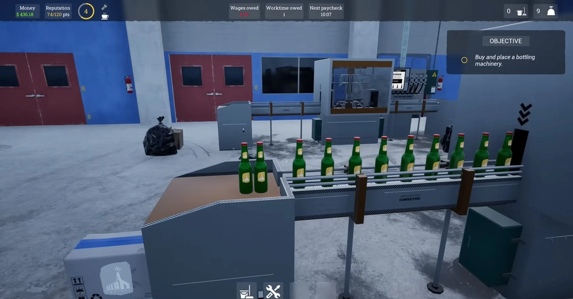 Теперь вернитесь к экрану и нажмите кнопку "Запуск", чтобы запустить машину и позволить ей наполнить пустые бутылки и упаковать их. Машина будет работать автоматически, но время от времени потребуются новые пустые бутылки. Также можно назначить рабочего, отвечающего за подачу бутылок на разливочное оборудование.