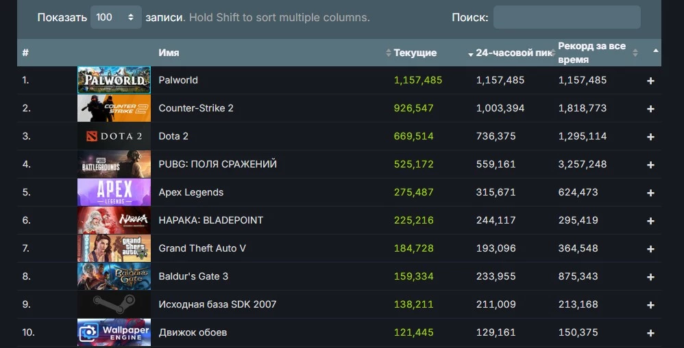 Palworld – это новый симулятор выживания с элементами боевых покемонов, который был выпущен в раннем доступе 19 января на ПК и Xbox Series. На данный момент в Palworld одновременно играет 1 157 485 игроков, а проект занимает лидирующую позицию в списке самых популярных игр в Steam.