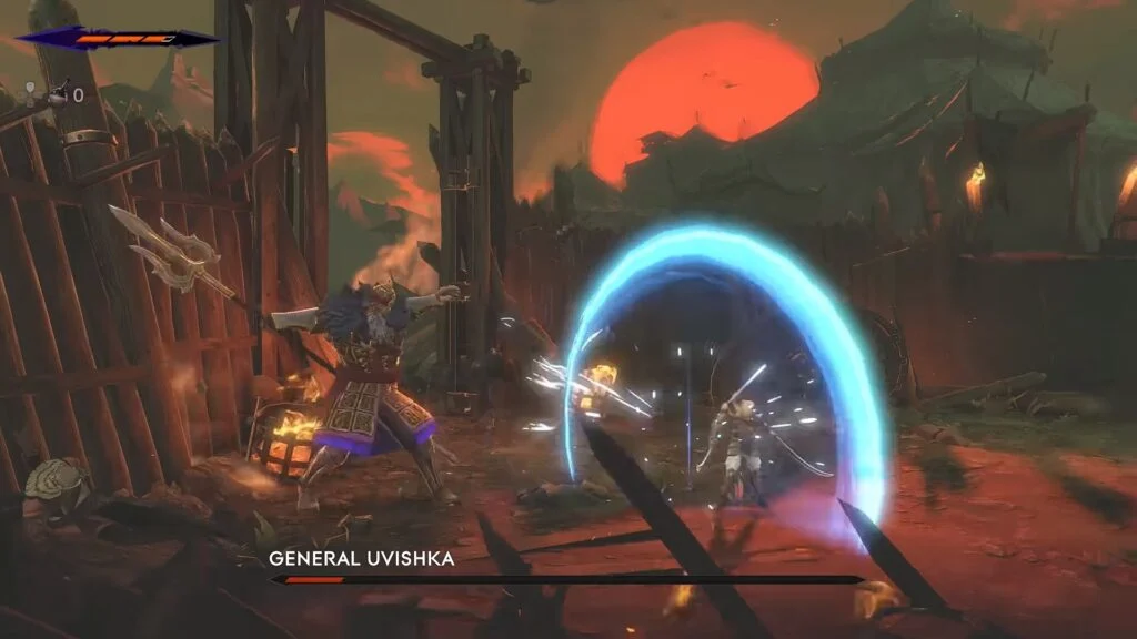 Генерал Увишка - это двухфазовый бой с боссом, включающий несколько обычных и пару тяжелых атак. Обычные атаки можно блокировать и парировать, но от тяжелых атак следует уклоняться, чтобы контратаковать Увишка. Один из самых простых способов победить генерала Увишка - уклоняться от его атак, обычных или тяжелых, и начинать атаковать сзади, пока он не станет достаточно сильным, чтобы нанести еще одну атаку.
