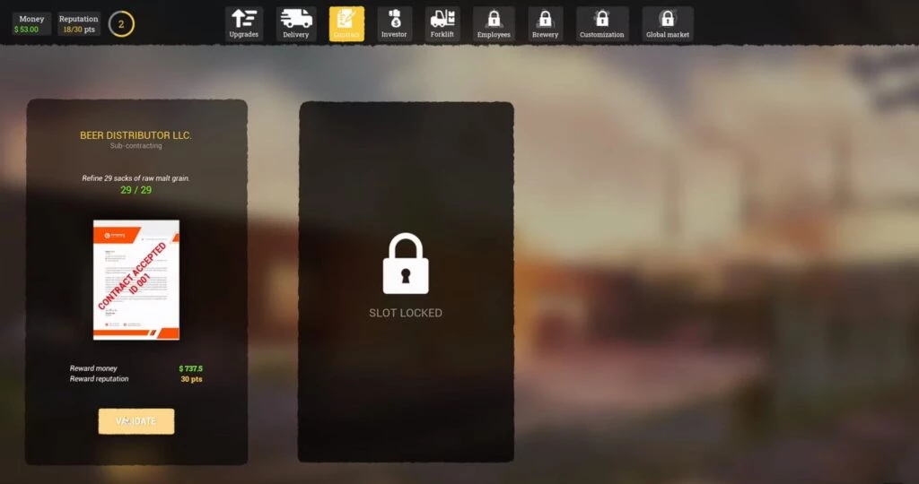 Новые контракты обновляются каждые 30 секунд на вкладке "Контракты" на компьютере, и если у вас есть свободное место для принятия контракта, просто примите его и выполните, чтобы быстро повысить уровень репутации. По мере роста уровня репутации на заводе появится второй слот для контрактов, позволяющий принимать два контракта одновременно, что делает этот метод более частым и необходимым.