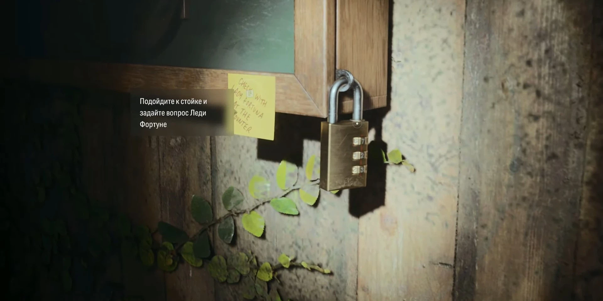 На стене в витрине будет размещен нужный дробовик. Однако вам не удастся просто взять его — оружие защищено кодовым замком. Чтобы найти код, вам следует изучить записку, прикрепленную к деревянной раме, где написано, что вам нужно обратиться к Леди Фортуне и задать ей вопрос.