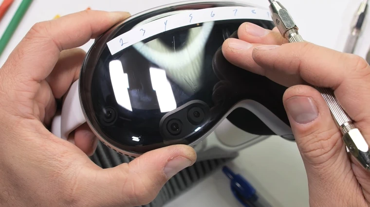 Ютубер Джек Нельсон (JerryRigEverything) опубликовал видео, в котором разбирает гарнитуру и испытывает прочность переднего стекла, которое защищает камеру, датчики и дисплей Vision Pro.