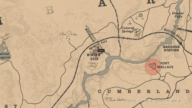 Позвольте Артуру сохранить их в журнале, не забудьте сделать скриншот с видом от первого лица для себя. Затем отправляйтесь на северо-восток и пересеките реку к югу от буквы I в надписи AMBARINO на карте.