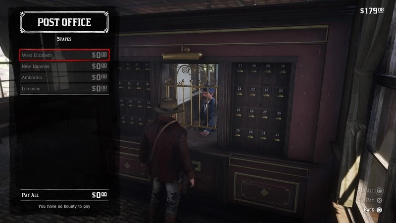 Избавиться от награды, объявленной за голову Артура, достаточно просто лишь в том случае, если вы еще не успели натворить много неправомерных дел. Все, что нужно сделать — посетить местное почтовое отделение и поговорить с клерком за прилавком. Появится возможность погасить штраф. Причем в одном "штате" за Артуром будут охотиться, в другом он будет чист перед законом. Избавляться от штрафов придется индивидуально, но для этого достаточно посетить любое почтовое отделение.