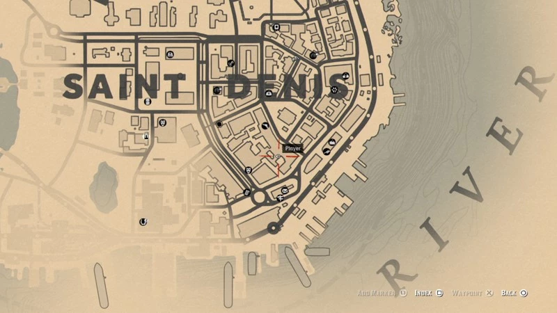 Первую запись можно обнаружить на здании немного выше второй буквы N в надписи Saint Denis на карте. Ищите на стене красной постройки с белыми дверями.