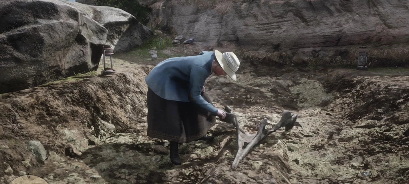 Чтобы его начать, побеседуйте с незнакомкой на раскопках к юго-востоку от лагеря банды Датча ван дер Линде. Тем не менее, кости можно найти заранее, до встречи с палеонтологом.