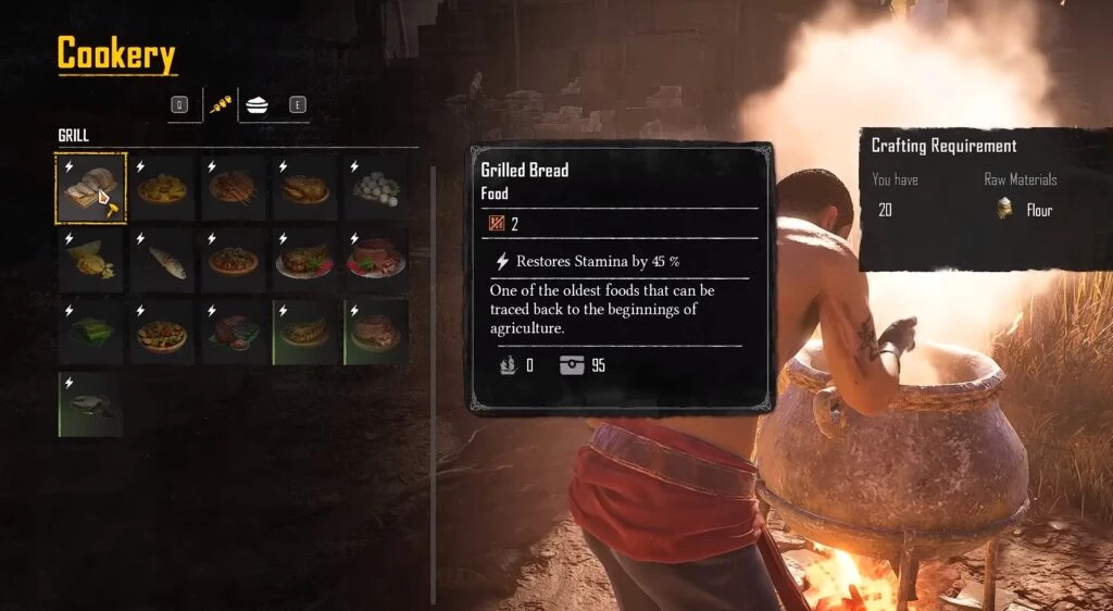 Чтобы получить жареную пищу и приготовленную пищу, вам нужно самостоятельно приготовить их на кулинарных станциях, которые можно найти в каждом основном передовом поселении, например, в Сен-Анне в районе Красных островов. Просто взаимодействуйте с кулинарной станцией и выберите сырую пищу, которую вы хотите пожарить, или для лучших результатов переключитесь на вкладку "готовка" и смешайте ее с другими сырыми продуктами питания, чтобы приготовить приготовленную пищу с дополнительными бонусами, а также восстановить выносливость.