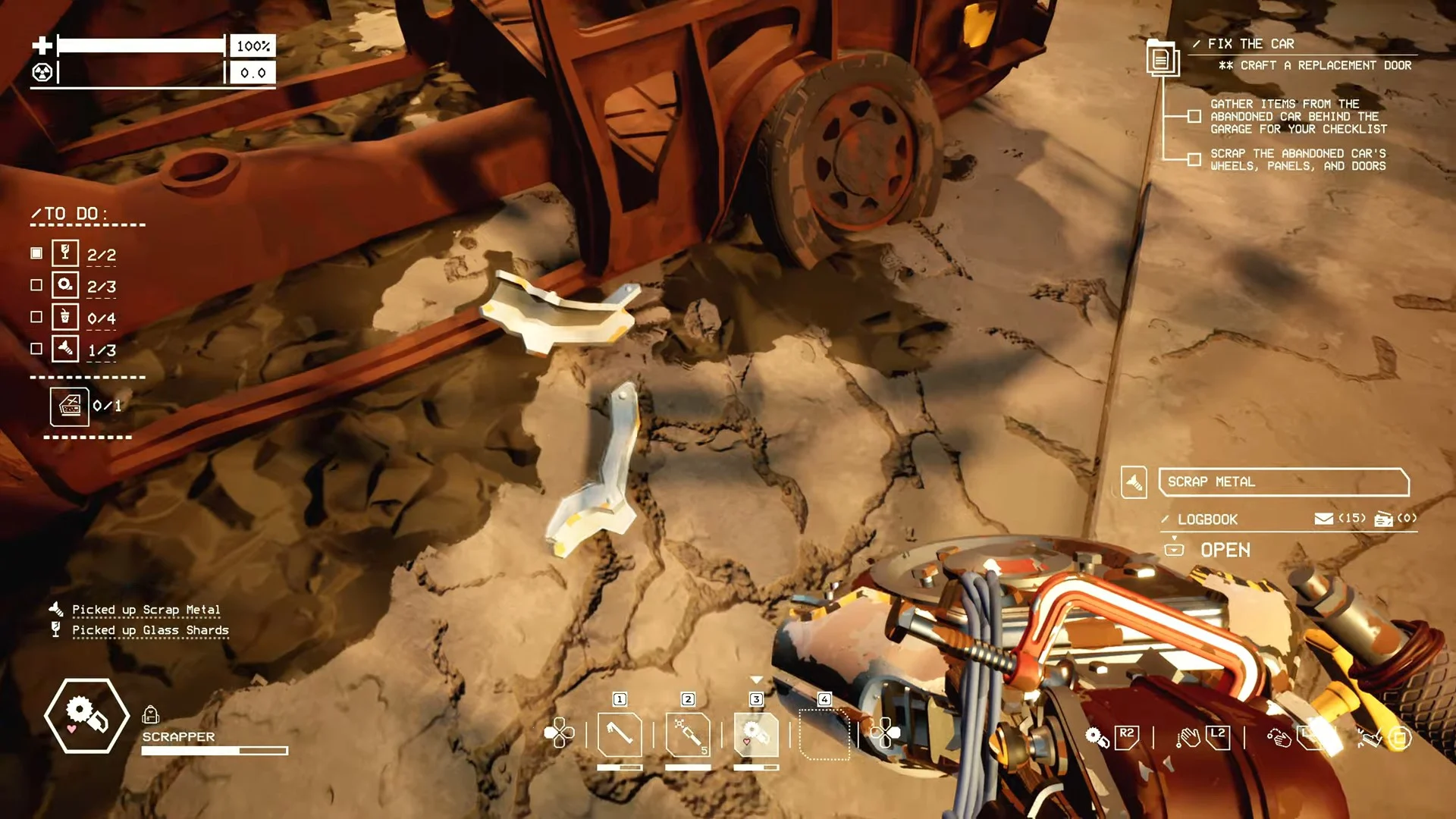 Получив скрэппер, необходимо его экипировать и начать использовать, проходя над различными частями автомобиля, такими как двери, багажник, капот и шины, чтобы разобрать их и получить ресурсы. Кроме того, можно получить металлолом, обыскивая Friendly Dumpster, которые находятся позади различных зданий, например автомагазинов. При взаимодействии с таким контейнером выпадут несколько предметов и, возможно, несколько кусков металлолома, однако нельзя всегда рассчитывать на то, что именно металлолом будет найден.
