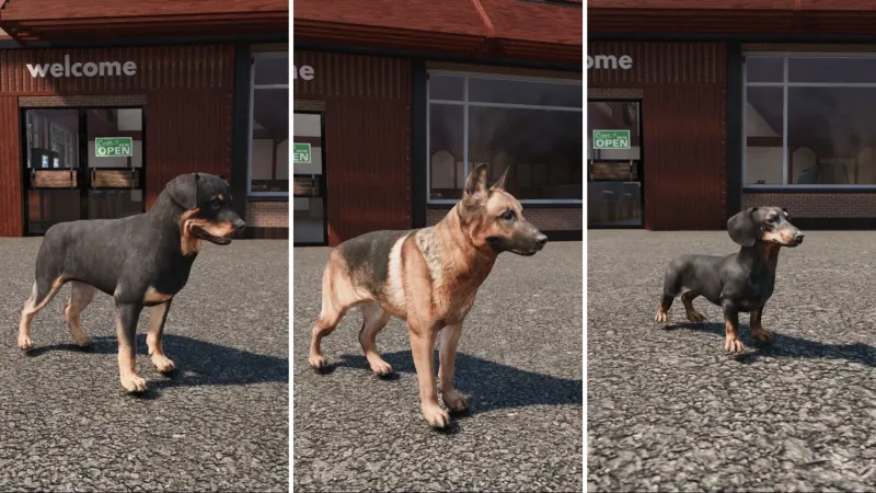 Такса, ротвейлер и немецкая овчарка уже доступны в магазине! Им можно приказать следовать за вами, а еще они умеют приносить предметы. Верный хвостик будет защищать вас от медведей и волков и придет на помощь в нужный момент. Если вы вдруг потеряете сознание, пушистик поможет вам подняться. Песику тоже нужен отдых, поэтому важно построить для него конуру.