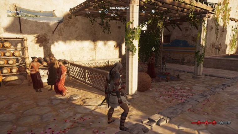 Феспис поручает вам задание - найти его музу, Экатерину. Она согласится присоединиться к Феспису только в случае, если вы убьете одного из стражников и принесете ей его оружие. Отправляйтесь в лагерь рядом и выведите командира из высокой травы, чтобы выполнить свою задачу. Не рекомендуется вступать в открытый бой, так как наемники активно разыскивают вас в Афинах, и в случае столкновения привлекут внимание.