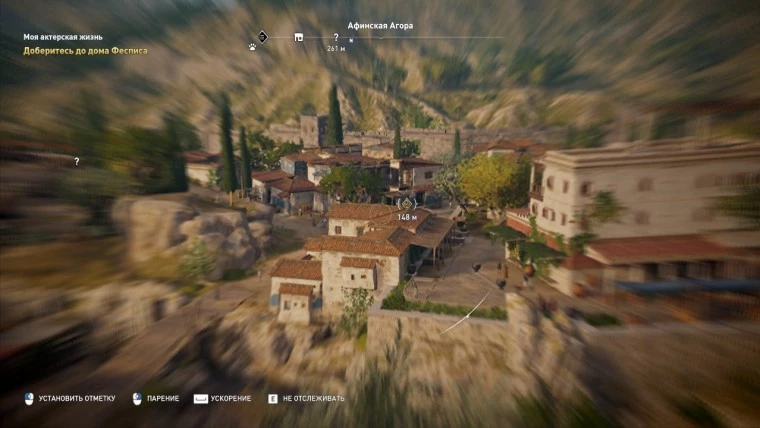 Фесписа вам нужно доставить домой. Помощник в виде Фобоса поможет вам садить актера на коня и следовать по маркеру.