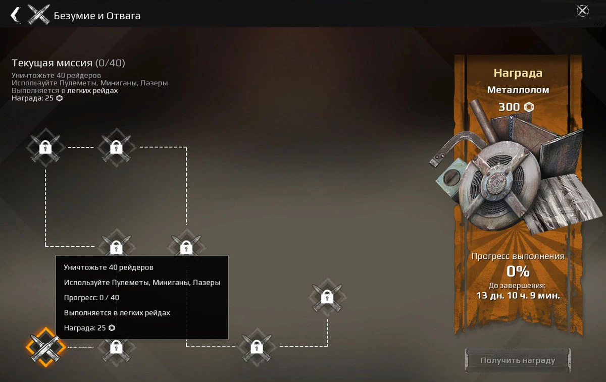 Это – еще одно валюта в игре. Получить металлолом можно в качестве награды за прохождение кампаний сезона легкого уровня сложности и за эффективность в PVP-потасовке (за исключением потасовки «За проводами!»). Выживаемость автомобиля на итоговую награду не влияет: значение имеет нанесенный урон, уничтоженные фраги и захват базы. Также получить некоторое количество металлолома можно, разобрав предмет любого качества. Однако учитывайте, что это невыгодно: на выходе будет существенно меньше ресурсов, чем потрачено на создание экипировки.