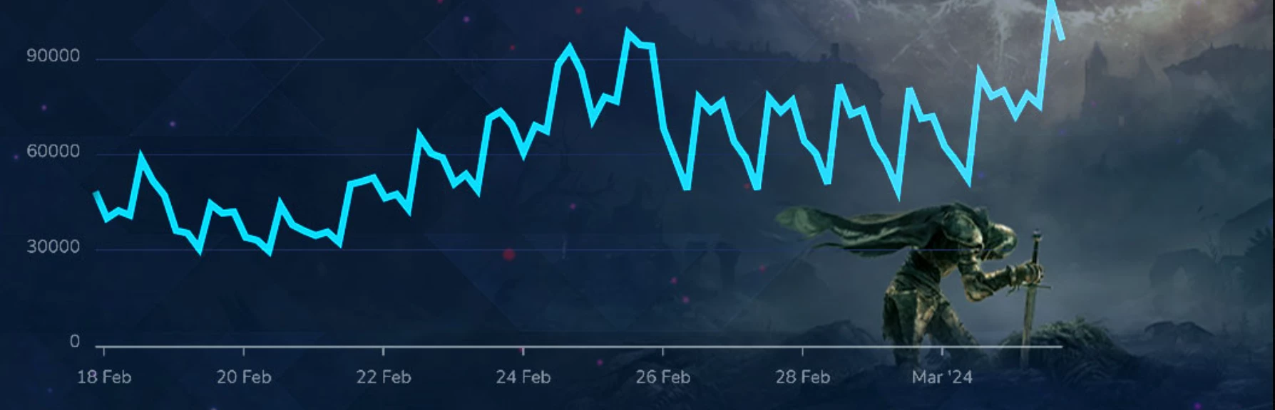 В конце февраля японская студия FromSoftware представила впечатляющий трейлер масштабного дополнения для игры Elden Ring и огласила точную дату релиза. Как ожидалось, видеоролик вызвал огромный интерес к этому хардкорному ролевому экшену, стимулировал продажи и привел к увеличению онлайн-активности игроков. На ПК через цифровой магазин Steam уже несколько недель подряд отмечается рекордное количество одновременных игроков, но число активных игроков на консолях PlayStation и Xbox оказалось еще выше.