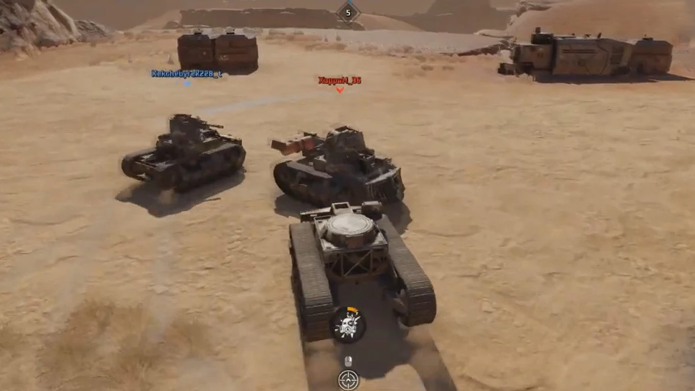 Как можно догадаться из названия, в схватке участвуют своеобразные танки – крафты, для создания которых использованы бронированные гусеницы от Мусорщиков, пушка «Толстяк» (предметы фиолетового качества), кабина «Панцирь», топливный бак, прицел СП-1 «Горизонт» (предметы синего качества) и отвал паровоза. Каждый такой танк имеет чуть менее 1000 очков прочности, 20 снарядов и передвигается со скоростью не более 50 км/ч, ограниченной особенностью гусениц.