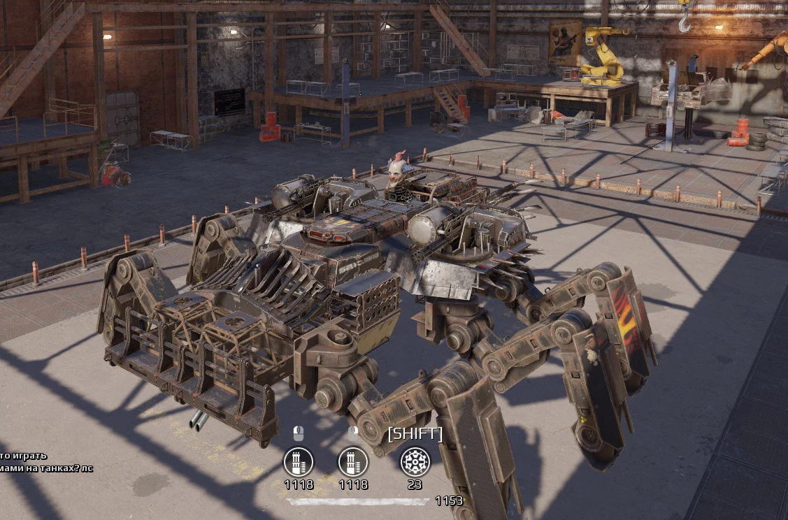 Крафт, оборудованный четырьмя (а лучше шестью) механическими ногами. Независимо от высоты конструкции центр тяжести расположен низко, поэтому перевернуть такую сборку чрезвычайно сложно. Кроме того, механические ноги амортизируют силу отдачи от пушек.