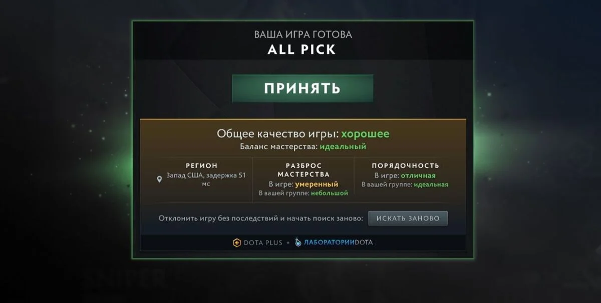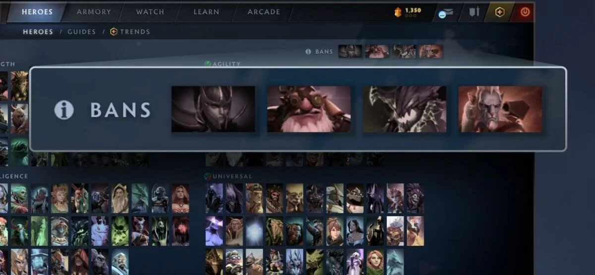Теперь игроки больше не нуждаются в этапе запретов перед матчем: в главном меню они могут выбрать до четырех нежелательных героев, и один из них будет автоматически запрещен в каждой игре. Подписчики Dota Plus получили возможность отклонять найденные матчи и начинать подбор заново без последствий.