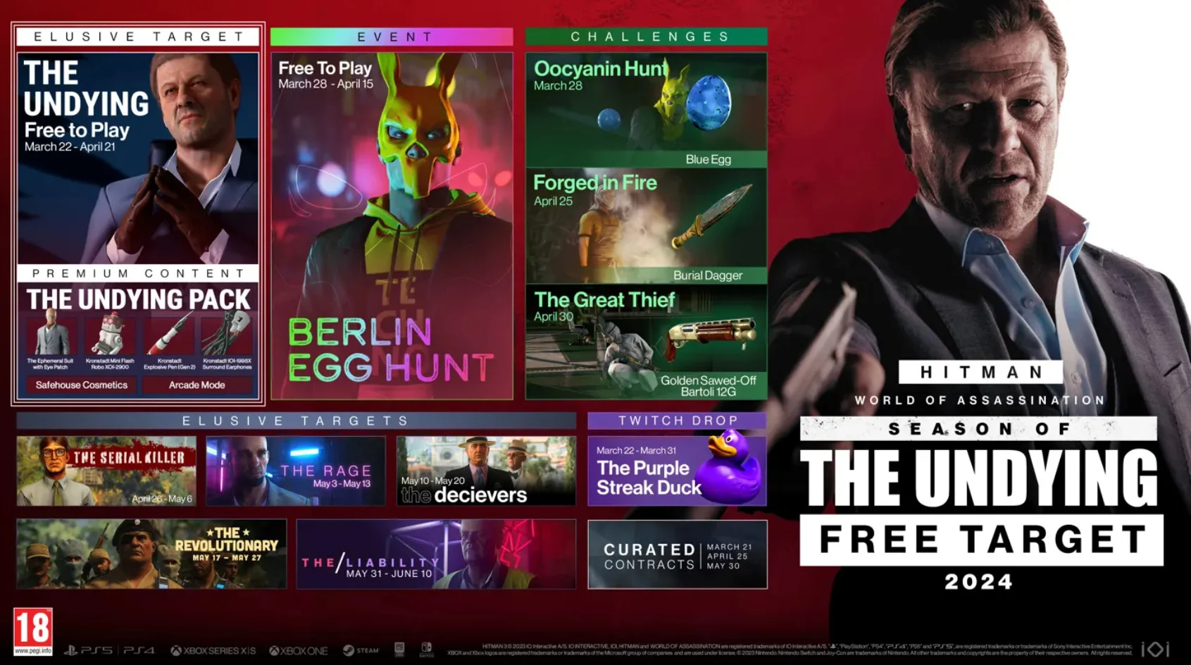 Игрокам предоставлен срок до 21 апреля, чтобы справиться с новой целью, внешностью которой обладает британский актер Шон Бин (известный по фильму «Марсианин»). Пока неизвестно, когда этот персонаж снова появится в игре после указанной даты. Также за дополнительные 200 рублей доступен The Undying Pack, включающий костюм для главного героя и несколько аксессуаров.