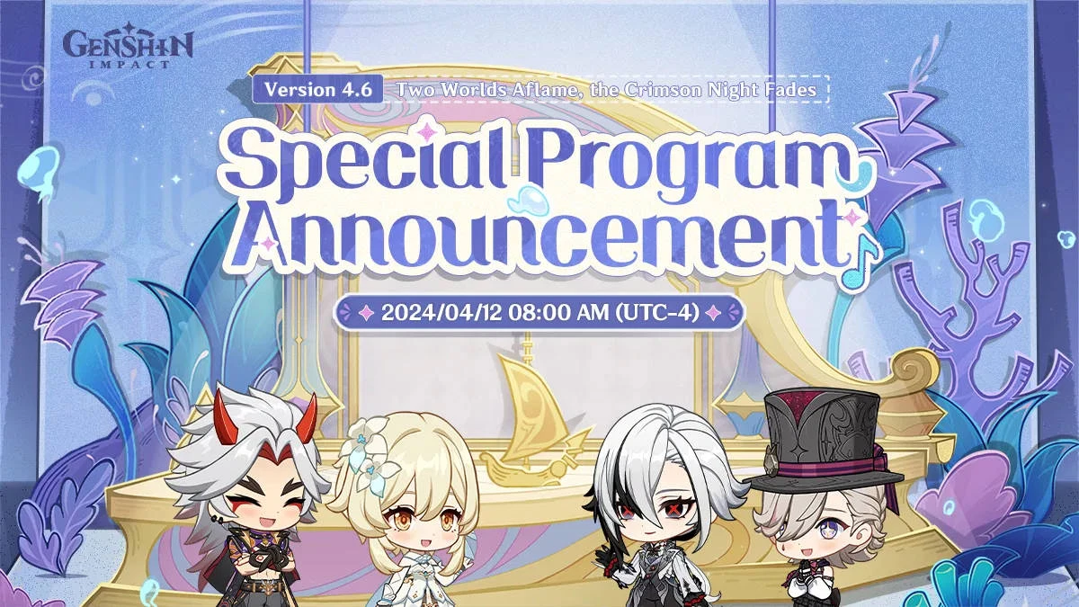 Разрабы Genshin Impact объявили о предстоящем стриме, посвященном долгожданному обновлению 4.6. Трансляция начнется 12 апреля в 15:00 по МСК на Twitch и YouTube.
