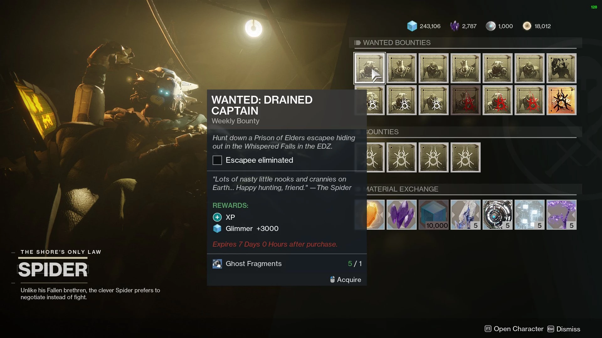 После победы над Истощенным капитаном награда Разыскивается пауком завершается. Отсюда вы можете вернуться обратно к Спутанному Берегу, чтобы получить больше розысков за еще больше очков опыта, блеска и улучшения. Помните, что вам понадобится здоровый запас Призрачных Фрагментов, поэтому не забывайте их зарабатывать.