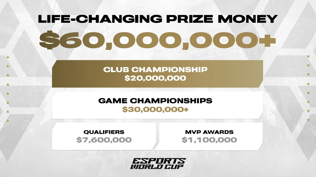 Чемпионат Esports World Cup побил рекорд по размеру призового фонда в истории киберспорта, анонсируя сумму в 60 миллионов долларов. Организаторы предложили различные категории соревнований для распределения этих средств.