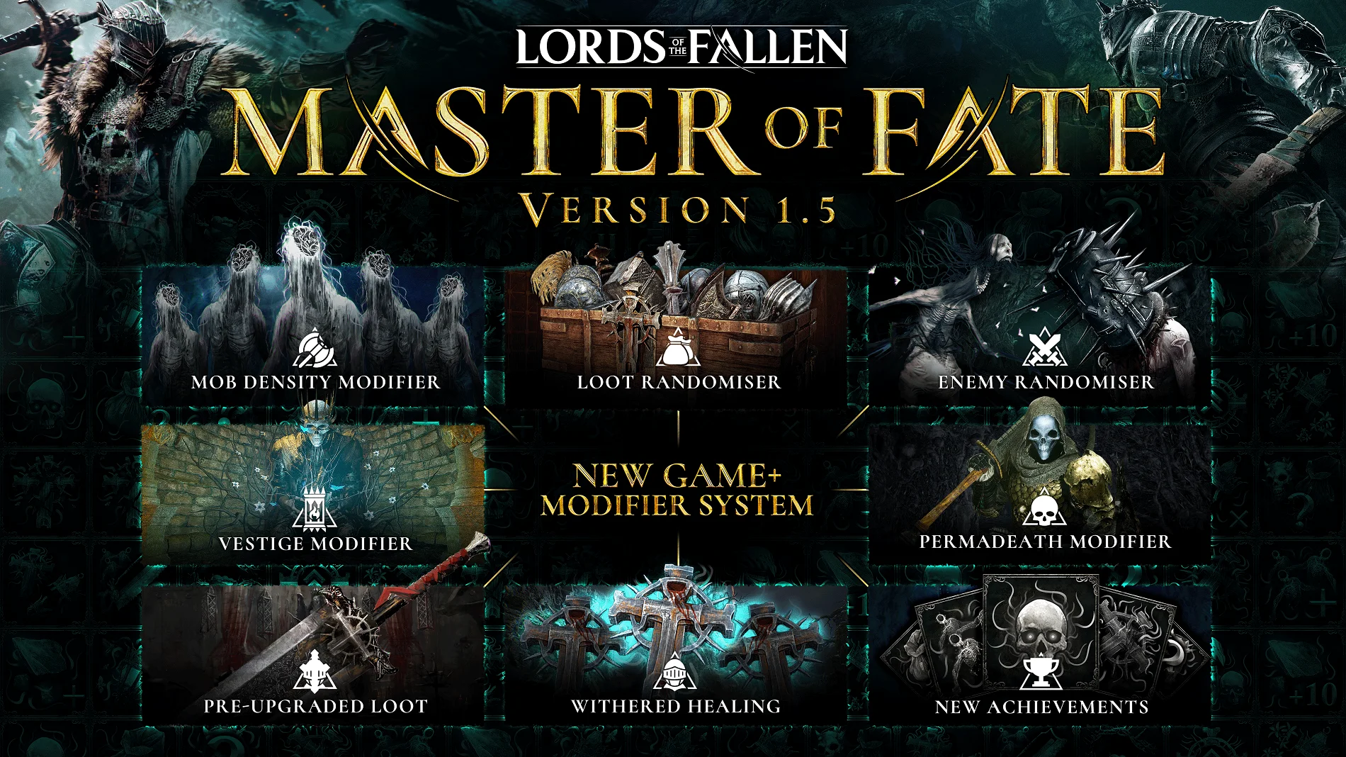 Команда Hexworks выпустила обновление своего ролевого экшена Lords of the Fallen до версии 1.5 с названием Master of Fate. В игре появилась новая система модификаторов, позволяющая настроить игровой процесс по своему усмотрению — изменить характеристики врагов, внести изменения в плотность массовых боев, выбрать постоянную смерть и многое другое.